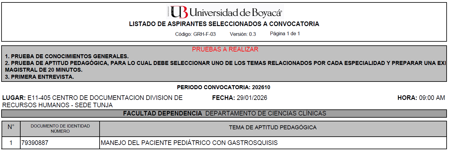 Ingreso de hojas de vida en el aplicativo de la Universidad de Boyacá debidamente soportadas: del miércoles 21 de enero al domingo 25 de enero de 2026 hasta las 11:59 pm.