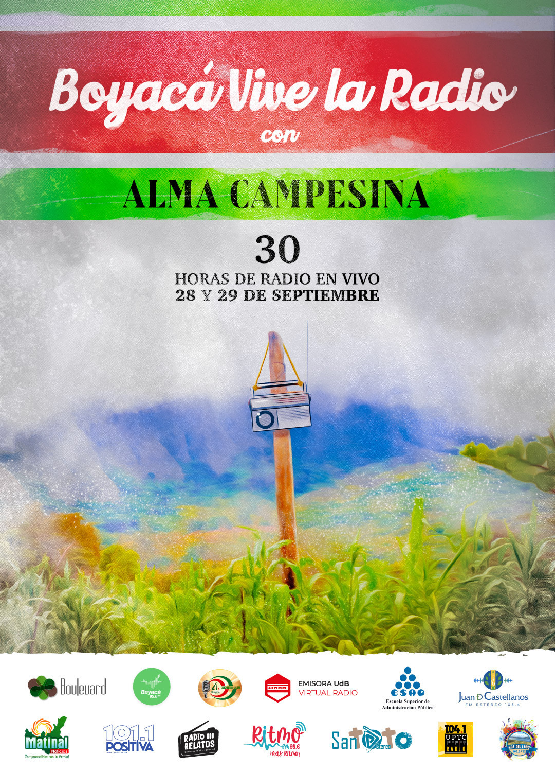 Durante 30 horas, profesionales de la comunicación, radialistas y estudiantes de comunicación social, realizarán emisiones en vivo desde el 28 de septiembre a las 02:00 p.m. hasta el viernes 29 de septiembre a las 08:00 p.m., celebrando la esencia rural de la región y destacando el papel de los campesinos en la construcción de la identidad y el progreso del departamento.