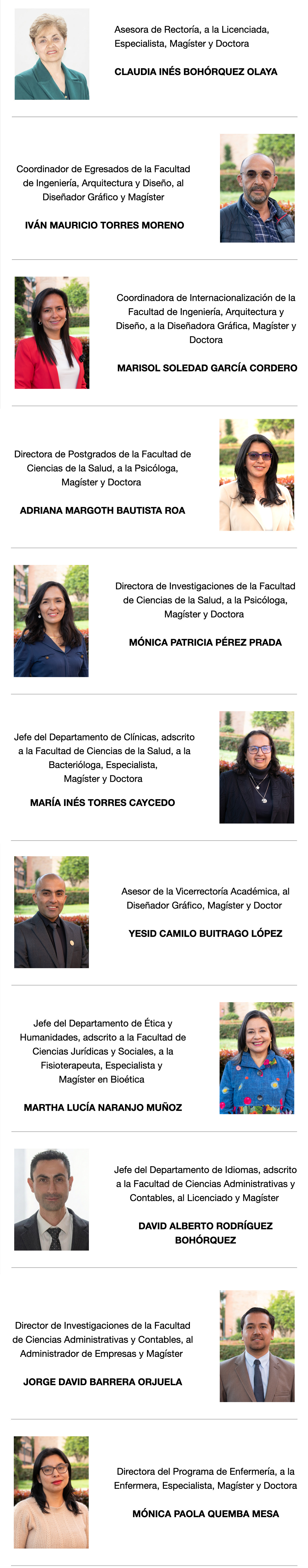 Fiel a su compromiso permanente con la excelencia académica, la mejora continua de los procesos institucionales y el fortalecimiento de la gestión administrativa, las directivas de la Universidad de Boyacá designaron a un grupo de funcionarios en cargos de dirección académica y administrativa quienes, por su trayectoria, experiencia y competencias profesionales, aportarán significativamente al cumplimiento de los objetivos misionales de la Institución. Estas designaciones entran en vigencia a partir del 13 de enero de 2026.