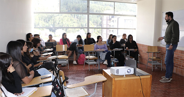 En el marco de la asignatura Profundización en Psicología Clínica, los estudiantes de séptimo semestre de la sede Sogamoso participaron en una enriquecedora jornada académica orientada por el psicólogo y psicoterapeuta Sebastián Castañeda, especialista en terapias conductuales-contextuales. Durante el encuentro, el experto abordó la Psicoterapia Analítica Funcional (FAP), enfoque que promueve el cambio conductual a través de la interacción en tiempo real entre el terapeuta y el paciente. Esta experiencia permitió a los futuros psicólogos ampliar su comprensión sobre los procesos terapéuticos contemporáneos y fortalecer su formación académica y profesional desde una perspectiva práctica y reflexiva.