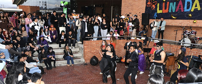 En un ambiente lleno de creatividad y compañerismo, la División de Bienestar Universitario de la sede Sogamoso realizó el pasado 31 de octubre la Lunada de Terror, una noche dedicada a la cultura, la recreación y el fortalecimiento de los lazos institucionales. Más de 150 asistentes, entre estudiantes, egresados y funcionarios, disfrutaron de una variada programación que incluyó presentaciones artísticas de los grupos institucionales de danza y música, así como de la Compañía Artística Framh Dance, invitada especial de la velada. La jornada también contó con la participación activa de estudiantes de los módulos Vida Saludable y Formación Integral II, quienes ofrecieron aperitivos y pasabocas elaborados por ellos mismos. Esta iniciativa, además de fomentar la integración, promovió valores de convivencia, creatividad y bienestar dentro de la comunidad UdeB.