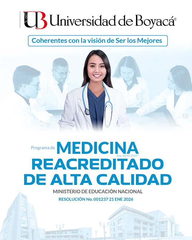 La Universidad de Boyacá celebra la reacreditación en alta calidad del programa de Medicina por un período de seis (6) años, reconocimiento que ratifica la solidez de su proyecto académico y su compromiso permanente con la excelencia educativa. Este importante logro, otorgado mediante Resolución No. 001237 del 21 de enero de 2026 del Consejo Nacional de Acreditación (CNA), además de reflejar el trabajo continuo en aspectos como calidad de la formación, impacto de la investigación y desempeño de los egresados, destaca además, el esfuerzo articulado de directivos, docentes, estudiantes, egresados y personal administrativo, quienes, desde sus distintos roles, han contribuido al fortalecimiento del programa. Esta acreditación, consolida al programa de Medicina de la UdeB como un referente académico en la región y el país, y reconoce el liderazgo de la médica Nohora Sánchez Capacho, quien orientó y acompañó de manera integral el proceso que permitió alcanzar este logro institucional.